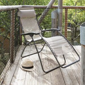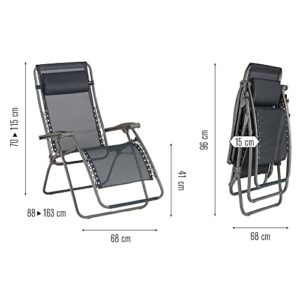 - ZERO-GRAVITY-POSITION: In der Zero-Gravity-Position sind Ihre Beine leicht über dem Herzen positioniert, in einem perfekten 127° Winkel für die Blutzirkulation und ideale Entspannung. Sie werden nicht mehr darauf verzichten wollen! Verstellbare Position mit Stabilisatoren. Ergonomische Armlehnen aus Harz und Schaum. Verstellbare und abnehmbare Kopfstütze. Klappbarer Liegestuhl mit Fußstützenschutz und Fußkappen.