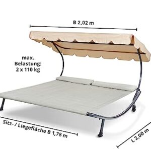 - PLATZ FÜR 2 – Ob im Garten, auf der Terrasse oder dem Balkon: Machen Sie es sich zu zweit dort gemütlich, wo Sie möchten (max. Belastung: 2 x 110 kg). Dank der Rollen am Kopfende kann die Liege einfach verschoben werden