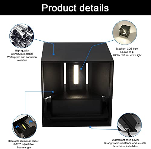 - 8 Pack 12w LED Wandleuchten Aussen/Innen;Anzahl led wandleuchten: 8, wandleuchten Größe: 10x10x10cm/3,9*3,9*3,9in, Leistung: 12W, Spannung: 85-266V;Farbtemperatur: Natürliches Weiß 4000K. Die Erscheinungsfarbe der LED Wandleuchte 12W ist schwarz, natürliches Weiß 4000K Lichtfarbtemperatur, elegant, weich und hell, das schöne Licht der modernen kleinen Wandleuchten kann Ihnen gute Laune bringen!