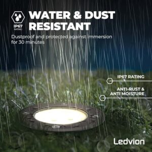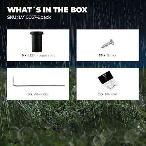- Der LED Bodenstrahler hat Schutzklasse IP67 und ein wetterbeständiges Gehäuse, weshalb er ohne weiteres im Außenbereich betrieben werden kann.