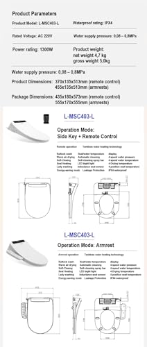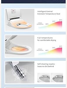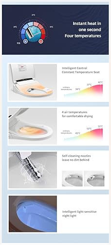 - ✅ Bidet-Funktionen: Verstellbare Wassertemperatur und variabler Wasserdruck, Oszillierende Düse für gründliche Reinigung, Integriertes LED-Nachtlicht, Sitzheizung für angenehm warme Sitzfläche, RF-Fernbedienung zur bequemen Steuerung, Automatische Düsenreinigung vor und nach der Nutzung, Föhn-Funktion zum sanften Trocknen, Ladydusche & Gesäßdusche separat wählbar, Energiesparfunktion für effizienteren Betrieb
