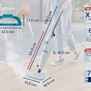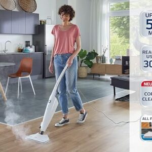 - Schnelle Einsatzbereitschaft - Durch die kurze Aufheizzeit von unter 30 Sekunden ist das Gerät direkt bereit, sodass der Dampfmopp Böden wie Fliesen, Laminat, Holz und Teppich im Nu säubert