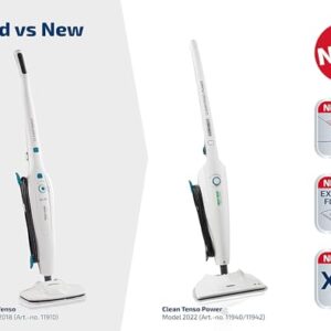 - Lieferumfang - Leifheit Dampfreiniger CleanTenso Power 2.0, inklusive Teppichgleiter und waschbarem Mikrofaser-Wischpad, abklappbarer Stiel, 7m Kabel, Artikelnummer 11940