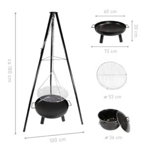 - 🔥 KULINARISCHE VIELFALT: Verwöhnen Dich und Deine Gäste mit einer breiten Auswahl an Gerichten, die alle mit nur einem 3 Bein Grill zubereitet werden können. Gegrilltes oder Suppen, überrasche mit Stockbrot und serviere im Winter Glühwein und Punsch