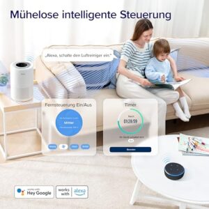 - 𝐒𝐦𝐚𝐫𝐭 𝐅𝐞𝐫𝐧𝐛𝐞𝐝𝐢𝐞𝐧𝐮𝐧𝐠: Per VeSync App können Sie überall Lüfterstufe und Modus ändern, Filterlebensdauer prüfen, Zeitpläne festlegen, Timer einstellen; Hinweis: Über 2,4 GHz WLAN bei der Verbindung