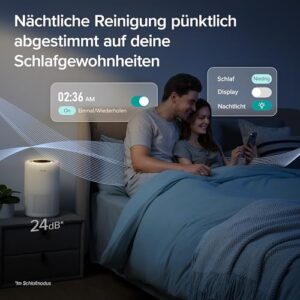 - 𝐁𝐞𝐬𝐨𝐧𝐝𝐞𝐫𝐬 𝐥𝐞𝐢𝐬𝐞𝐫 𝐁𝐞𝐭𝐫𝐢𝐞𝐛: Mit QuietKEAP-Technologie arbeitet der Luftreiniger im Schlafmodus nahezu geräuschlos (24dB); Lautstärke bei höchster Stufe ist 45dB