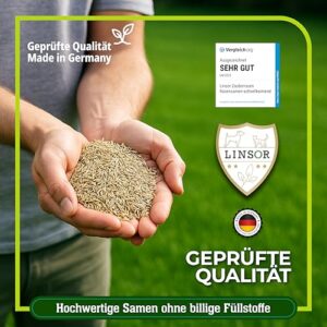- ERGIEBIGE MISCHUNG FÜR - Rasensamen reicht für bis zu 500 m² bei empfohlener Aussaatmenge; unterstützt einen schnell wachsenden Rasen bei sachgerechter Bodenvorbereitung und Bewässerung.