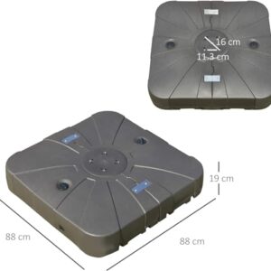 - Flexible Räder für einfache Bewegung - Die eingebauten Räder auf einer Seite ermöglichen es Ihnen, den Sonnenschirmfuß mühelos hin und her zu bewegen, während zwei Schlösser Ihren Schirm an Ort und Stelle halten. Wir raten Ihnen, mindestens die Hälfte des Wassers zu entleeren, bevor Sie diesen Sonnenschirmfuß bewegen. Speziell für Ampelschirm, hilft Ihnen, den Sonnenschirm fest zu sichern.