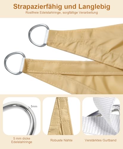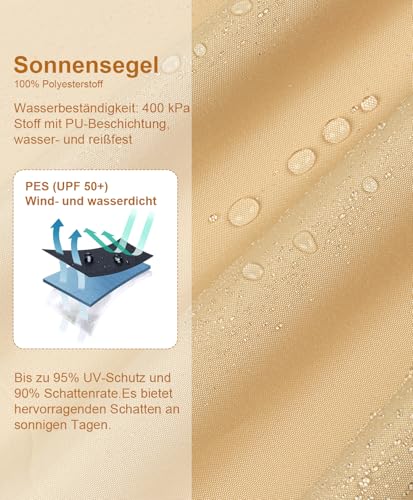 - 【UV-Schutz & Kühlung】:Hergestellt aus hochdichtem Polyester (160 g/m²) ist unser Sonnensegel von Natur aus beständig gegen Verblassen und Abrieb. Dieses hochwertige Segeltuch blockiert effektiv bis zu 95 % der schädlichen UV-Strahlen und direkter Sonneneinstrahlung und schafft so einen sichereren, komfortableren Sonnenschutz-Bereich.