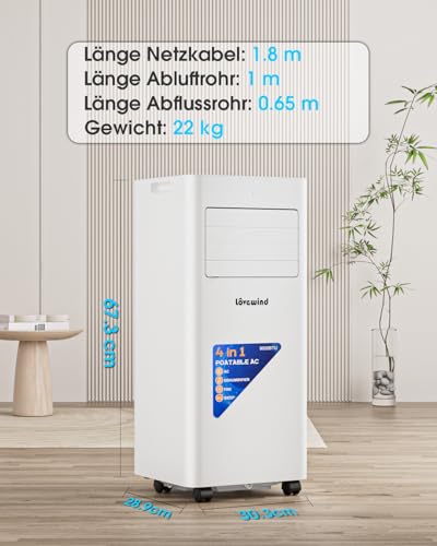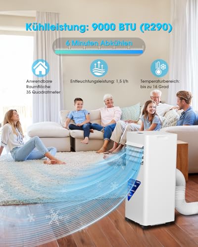 - Optimale Kühlleistung: Mit einer Kühlleistung von 9000 BTU/h eignet sich dieses mobile Klimagerät perfekt für Räume bis zu 30 m² (Schlafzimmer, Büro, Studio). Die umweltfreundliche R290-Technologie reduziert die Umweltbelastung.