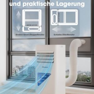 - Kompaktes Design mit Rollen: Mit einem Gewicht von nur 23 kg und einem universellen Fensterinstallationskit ist das Gerät werkzeuglos mobil und einfach zu installieren. Gleichzeitig bereiten wir Staubbeutel zur einfachen Lagerung vor.