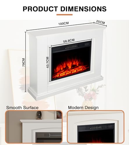 - [ABMESSUNGEN] Gesamtabmessungen: 100cm*25cm*79cm. Kamineinsatz: 58,8*43,7. 12 Monate Garantie. Bitte kontaktieren Sie uns, egal welches Problem Sie haben, wir werden eine schnelle Antwort und eine zufriedenstellende Lösung anbieten.