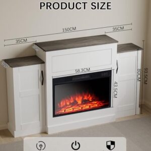 - 【Design & Funktionalität】 Multifunktionaler 150CM Kamin TV-Ständer mit 3D realistischen Flammen Verwandeln Sie Ihren Wohnbereich mit dieser multifunktionalen TV-Konsole, die modernes Design mit gemütlicher Wärme verbindet. Der elektrische Kamin verfügt über 3 einstellbare Flammeneffekte und 3 Helligkeitsstufen, um Ihrer Stimmung zu entsprechen. Der eingebaute 1-8-Stunden-Timer und der automatische Überhitzungsschutz sorgen für einen sorgenfreien Betrieb.