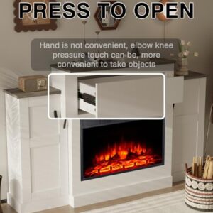 - 【Storage Optimization】 Maximieren Sie den Platz mit zwei geschlossenen Schränken + Push-to-Open-Schublade Zwei staubdichte, geschlossene Seitenfächer (für Spielkonsolen/Medienboxen) und eine Push-to-Open-Schublade über dem Feuerraum (ideal für Fernbedienungen/Zubehör) sorgen dafür, dass Unordnung vermieden wird.