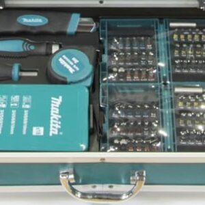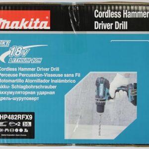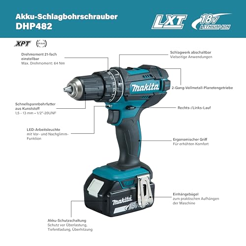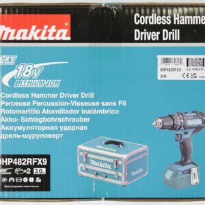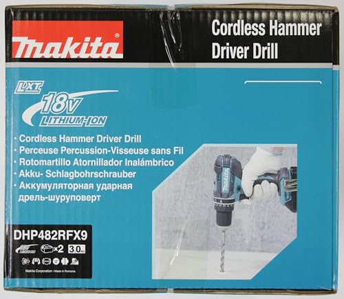 Makita DHP482RFX9 Schlagbohrschrauber 18V / 3,0 Ah, 2 Akkus plus Ladegerät im Alukoffer, Petrol, 96-tlg. Zubehör-Set