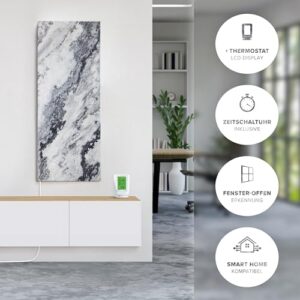 - 𝐌𝐀𝐗𝐈𝐌𝐀𝐋𝐄 𝐒𝐈𝐂𝐇𝐄𝐑𝐇𝐄𝐈𝐓 & 𝐄𝐈𝐍𝐅𝐀𝐂𝐇𝐄 𝐌𝐎𝐍𝐓𝐀𝐆𝐄 – Sorgenfreies Heizen dank geprüfter Sicherheitsstandards. Ein integrierter Überhitzungsschutz schaltet das Gerät bei Bedarf automatisch ab. Die schlanke Wandheizung (100x40x2 cm) wird einfach an die Wand montiert und per Stecker angeschlossen.