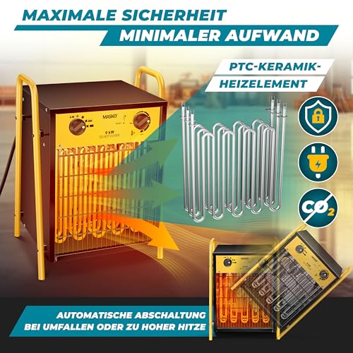 - 𝐅𝐋𝐄𝐗𝐈𝐁𝐄𝐋 𝐄𝐈𝐍𝐒𝐄𝐓𝐙𝐁𝐀𝐑: Egal ob in der Baustelle , Werkstatt Garage, Wohnung, Büro, Keller oder beim Camping - das Gestell sowie der Tragegriff sorgen für eine Flexibilität. Treuer Begleiter an kalten Tagen sicher und bequem überall hin mit zu transportieren. PTC-Elemente dienen als Wärmequellen in Luftheizungen, Trocknungsgeräten und Innenraumheizungen - sie bestehen aus Kaltleitern und Aluminiumstreifen.