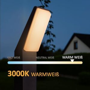 - 1500 LUMEN POWER-LED: Mit 12W Leistung erzeugt der integrierte LED-Chip ein kraftvolles Licht, das Wege breitflächig ausleuchtet. Die Lichtfarbe 3000K (Warmweiß) sorgt dabei für eine gemütliche, nicht blendende Atmosphäre im Garten.