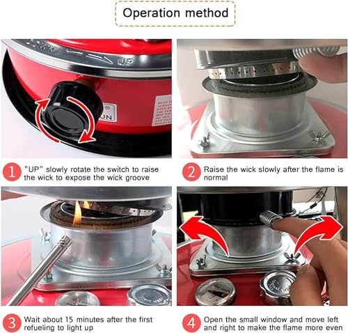 - Der Kraftstofftank hat ein Fassungsvermögen von 4,5 l, verfügt über eine Aufbewahrungstasche und einen Ersatzdocht for einfachen Tragen unterwegs, mit einem Griff for flexible Bewegung, gute Stabilität und Haltbarkeit.