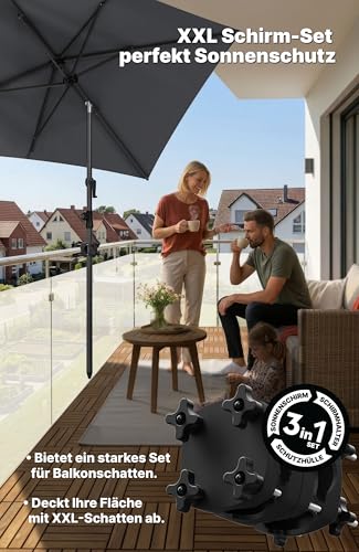 - MÜHELOSE BALKON-MONTAGE: Ob Balkon, Terrasse oder Garten – dieser Sonnenschirm Balkon spendet viel Schatten. Die Halterung sitzt sicher am Geländer und spart wertvollen Platz am Boden.