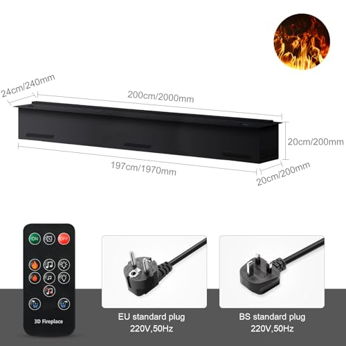 - 【Einfach zu installieren】: reservierte Größe des Ständers: Länge 2000 x Breite 21 x Höhe 20 cm, passt perfekt zur Feuerstelle, schließen Sie den Wasserschlauch und den Standardstecker 220 V an. Erleben Sie die wunderbare 3D-Atomflamme.