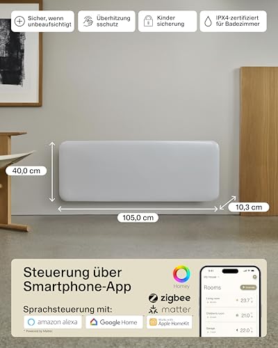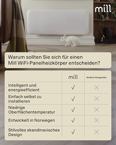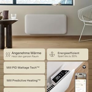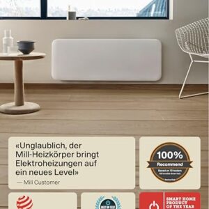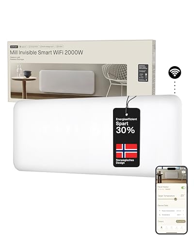 Mill Invisible WIFI Radiator Heizung elektrisch 2000W, Smarte Elektroheizung energiesparend für 24-28m², Badheizkörper elektrisch, Wandheizung, Elektroheizkörper Designed in Norwegen – weiß