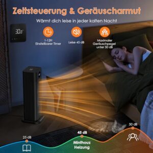 - Befriedigen Sie mehr Ihrer Bedürfnisse:Minthouz Heizlüfter energiesparend verfügt über mehr Funktionen und Designs, um Sie zufrieden zu stellen; 12H Langzeit-Timer-Funktion ermöglicht es Ihnen, einen Termin zu machen, um den Elektroheizung innerhalb von 1-12 Stunden auszuschalten; Die LED-Digitalanzeige lässt Sie den Betriebsstatus des Keramik-Heizlüfters jederzeit wissen; Die ausgestattete Fernbedienung lässt Sie den Heizlüfter aus der Ferne mit einer Taste bedienen; Diese humanisierten Designs machen Ihr Leben bequemer und wärmer