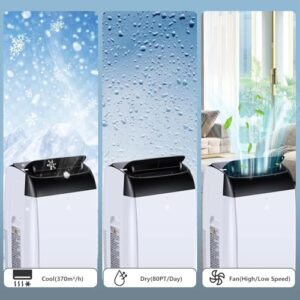 - 3-in-1: Klimaanlage, Ventilator & Luftentfeuchter Diese mobile AC Einheit kann mehr als nur kühlen. Nutzen Sie sie als Ventilator oder Luftentfeuchter, entfernen Sie überschüssige Feuchtigkeit und verbessern Sie das Raumklima. Einfach Modus wählen: Kühlen, Ventilator oder Entfeuchtung – je nach Wetter und Stimmung.