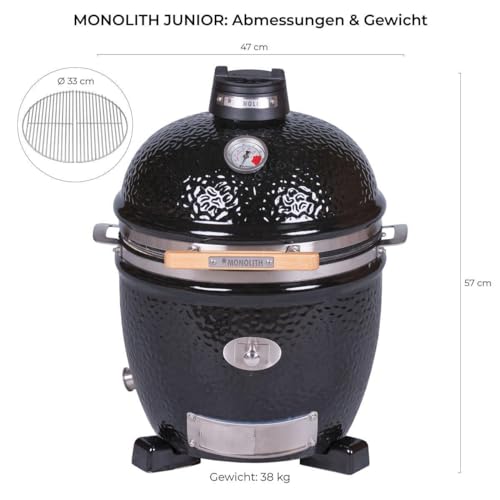 - Gourmet Grillergebnisse: Der MONOLITH JUNIOR wurde entwickelt für Grillen auf professionellem Niveau. Die schwere Keramik und präzise Dichtung lassen wenig Luft an das Grillgut heran und halten es stets saftig und zart. Die bereits integrierte Vorbereitung für den Guru-Blower ermöglicht das Anbringen einer automatischen Temperatursteuerung.