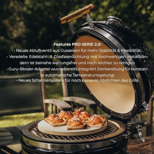 - Pflegeleicht: Die verbrannte Kohle wird durch eine untere Öffnung entfernt, den Rest der Reinigung übernimmt das Feuer, perfekt für alle die wenig Zeit dafür haben. Die überarbeitete PRO SERIES 2.0 Edelstahl- und Glasfaserdichtung ist beinahe wartungsfrei und noch leichter zu reinigen.