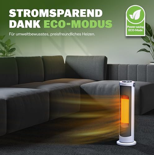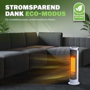- STROMSPAREND & STARK: Im stromsparendenden ECO-Modus heizt das Gerät die eingestellte Temperatur auf & hält diese stetig. 2 starke Axial-Lüfter sorgen für eine effektive Luftverteilung. Durch 70° Oszillation wird die Wärme bestens im Raum verteilt.