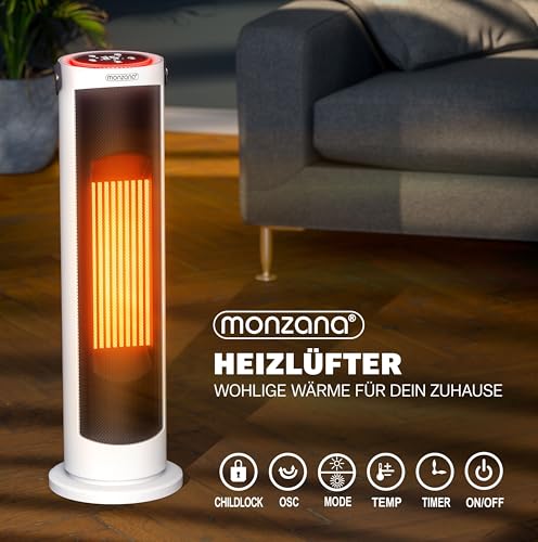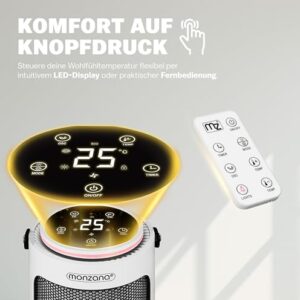 - SCHNELLES HEIZEN: Der hochwertige MONZANA 2 in 1 Heizlüfter sorgt mit 2000W und einstellbarer Temperatur von 15-35°C schnell für angenehme Wärme. Zusätzlich ist er auch als normaler Ventilator im Sommer nutzbar. Somit sind Sie für jede Jahreszeit mit nur einem Gerät bestens ausgerüstet!