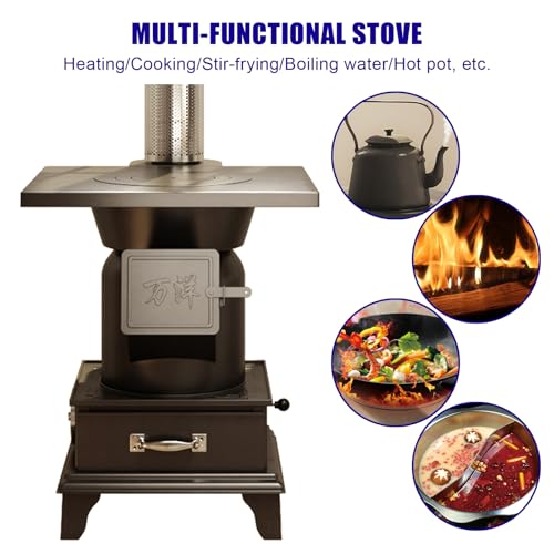 - HOHE WÄRMELEISTUNG UND EFFIZIENZ: Der Ofen ist vollständig verschweißt, luftdicht und die Verbrennungsgeschwindigkeit lässt sich präzise regulieren. Unabhängig vom Wetter können Sie damit Eintöpfe zubereiten und gleichzeitig heizen, kochen, braten, Wasser kochen, Hot Pot zubereiten usw.