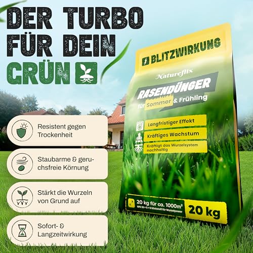 - PREMIUM PRODUKT – Schluss mit gelbem Rasen und großen Lücken! Unser hochwertiger Sommer Dünger ist für jede Wiese geeignet und entfaltet sein Geheimnis für anhaltendes Grün. Kostenlos für Sie: Gartenmesser für die Verpackung und Handschuhe zum austreuen, um Ihnen die Anwendung so einfach wie möglich zu machen.