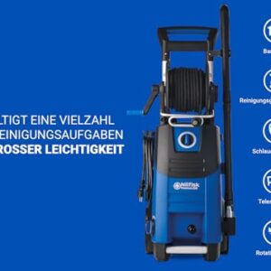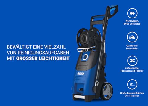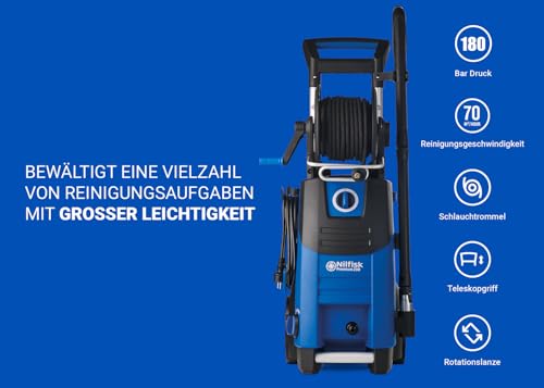 - NILFISK Hochdruckreiniger: Der leistungsstarke 200 Bar pressure washer ist dank seines robusten Induktionsmotors perfekt für die Reinigung großer Flächen geeignet