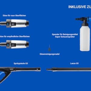 - ZUBEHÖR: Enthält eine G5-Pistole, einen Schaumsprüher, eine Düsenreinigungsnadel, eine sanfte Düse und eine grobe Düse.