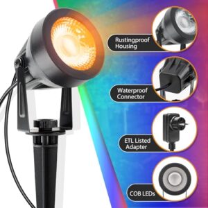 - 【Mehrere Farben und Modi】Gartenleuchten mit strom sind mit LED-Leuchten ausgestattet, die 16 Farben und 4 Modi anzeigen können. Der LED-Kopf mit COB-Technik sorgt für eine gleichmäßigere Beleuchtung eines weiteren und größeren Bereichs. Sie können das Ambiente ganz einfach an Ihre Stimmung oder das Thema Ihrer Veranstaltung anpassen.