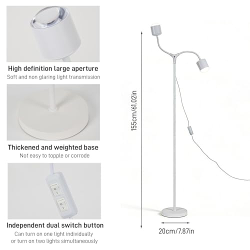- Nordic Modern Aesthetic: Diese Bodenleuchte verkörpert den nordischen modernen Stil durch seine saubere weiße Oberfläche und verstellbare Doppelköpfe. Mit den gekrümmten, flexiblen Armen können Sie das Licht genau dort richten, wo Sie es brauchen – ideal für Lesecken, Arbeitsräume oder Umgebungsbeleuchtung im Wohnzimmer, die minimalistisches Design mit Praktizität ausbalanciert