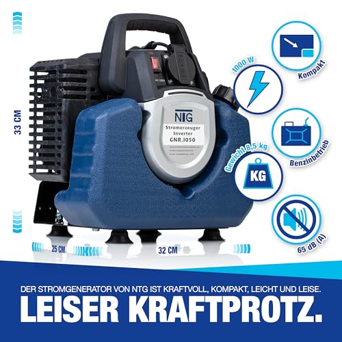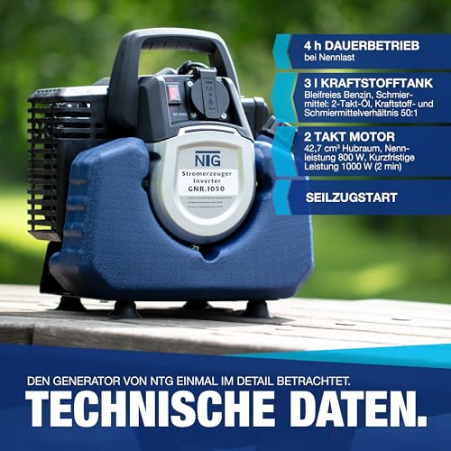 - ✔ PRAKTISCH: Durch den Tragegriff sowie das geringe Eigengewicht kann der Generator leicht transportiert und fast überall eingesetzt werden.