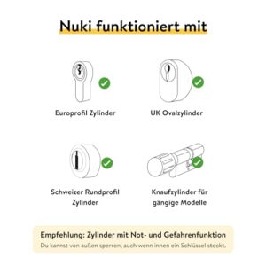 - Automatisch auf- und zusperren - Mit vollen Händen direkt ins Zuhause. Nuki erkennt dank Auto Unlock, wenn du nach Hause kommst und öffnet dir automatisch die Tür. Verlässt du dein Zuhause, schließt das Smart Lock mit Lock’n’Go sicher hinter dir ab.