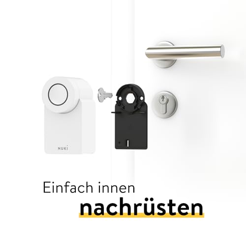 - Einfach nachrüsten - Installation in unter 3 Minuten. Auf der Türinnenseite über deinem vorhandenen Türschloss. Ganz ohne Bohren und Schrauben. Von außen völlig unsichtbar. Kann auch wieder rückstandslos entfernt werden. Prüfe auf der Nuki-Webseite, ob Nuki an deine Tür passt.