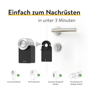 - Elektronisches Türschloss - einfaches Nachrüsten auf der Eingangstür. Smartphone statt Schlüssel. Steuere dein Türschloss aus der Ferne: mit integriertem WLAN oder Fernzugriff über Thread. Automatisches Türöffnen, Protokoll und einfache Integration in dein Smart Home.
