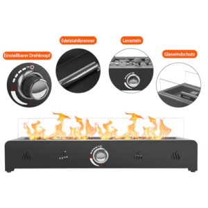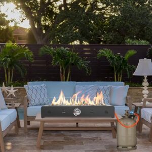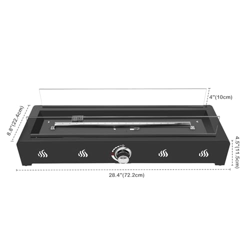 - DIMENSIONEN:Misst L 72,2 x B 22,4 x H 11,5cm mit einer Gesamtleistung von 6,45KW/22000 BTU, Gewicht 9,07KG. Spezifiziert für einen Betriebsdruck von 50 mbar. Ideal für die Verwendung als Feuergrube, Lagerfeuergrube, um Atmosphäre zu schaffen, Strandpartys und Familientreffen.