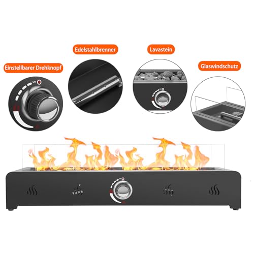 - SIE ERHALTEN:Propan Tischkamin-Kit enthält 1,53m Schlauch, Propan-betrieben mit einem voll einstellbaren Sicherheitsabsperrventil, 1,5kg Lavasteine und Glasschutz, entworfen, um einen warmen und mehr flackernden Effekt zu schaffen.