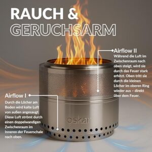 - Effiziente Verbrennung: Speziell platzierte Zuglöcher verbessern die Luftzirkulation und ermöglichen eine raucharme, effiziente Flammenentwicklung ohne störenden Qualm.
