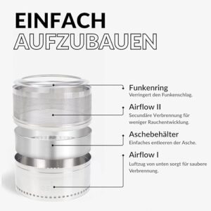 - Sicher & stabil: Der mitgelieferte Standfuß sorgt für festen Halt, während der Deckel das Feuer sicher verschließt – ideal für Garten, Terrasse oder Camping-Ausflüg