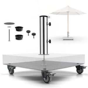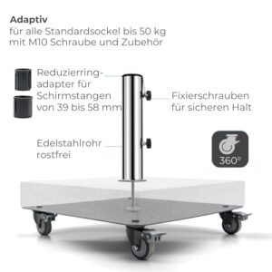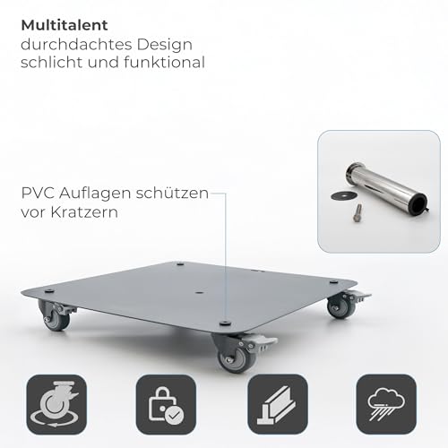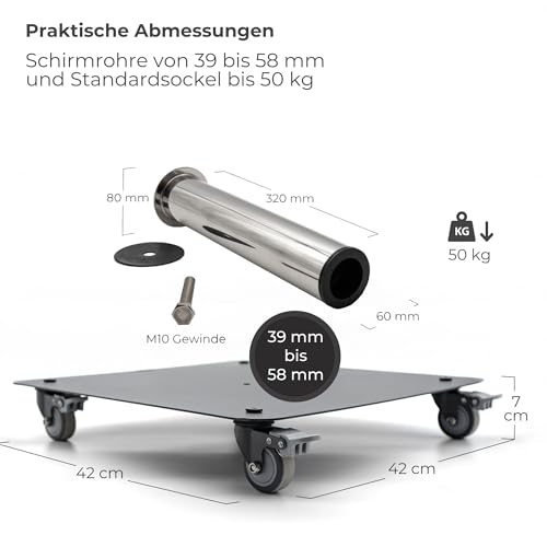 osoltus Universalplatte Metall lackiert Set | Schirmständer Vario mit Rollen 360° drehbar Feststellbremsen und Edelstahl-Schirmrohr für Sonnenschirme