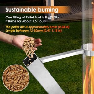 - Energiesparend und umweltfreundlich: Pelletheizung im Freien Kapazität von bis zu 1 kg Holzpellets pro Füllung (Pellets sind nicht im Lieferumfang enthalten), Sie können bis zu 1-1,5 Stunden kontinuierliche Verbrennung genießen. Festbrennstoff-Terrassenstrahler sorgt für eine dauerhafte Nutzung, ideal für entspannte Abende im Freien.