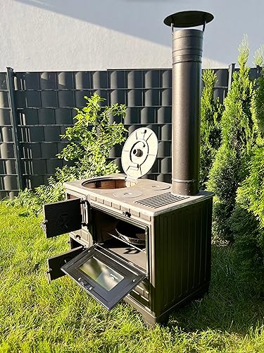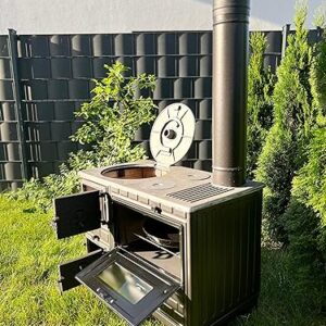 Outdoor-Küchenofen Terrassenofen Kuzine Soba/Gartenküche Holzofen Ofen mit Holzkohle (Guss 140cm Rohr Regenhaube)