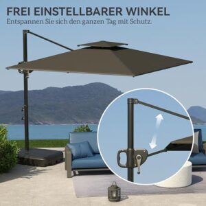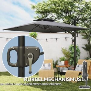 - Praktisches Kurbel-System: Mit dem Griff am pulverbeschichteten Mast lässt sich der Ampelschirm einfach und schnell öffnen und schließen.